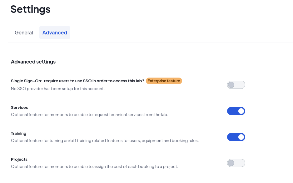 During conversations with a lot of our industry customers it was pointed out that projects were not something that was of use to them, and this may also be the case for some of our other users, therefore we decided to give you the choice whether to utilize this feature in your lab. In the same way as we have done for both services and training, you can opt out of the features via the advanced setting tab in your lab settings, if you switch the toggle off, the feature will be removed from your lab, but you will always have the option to turn it back on if you change your mind.