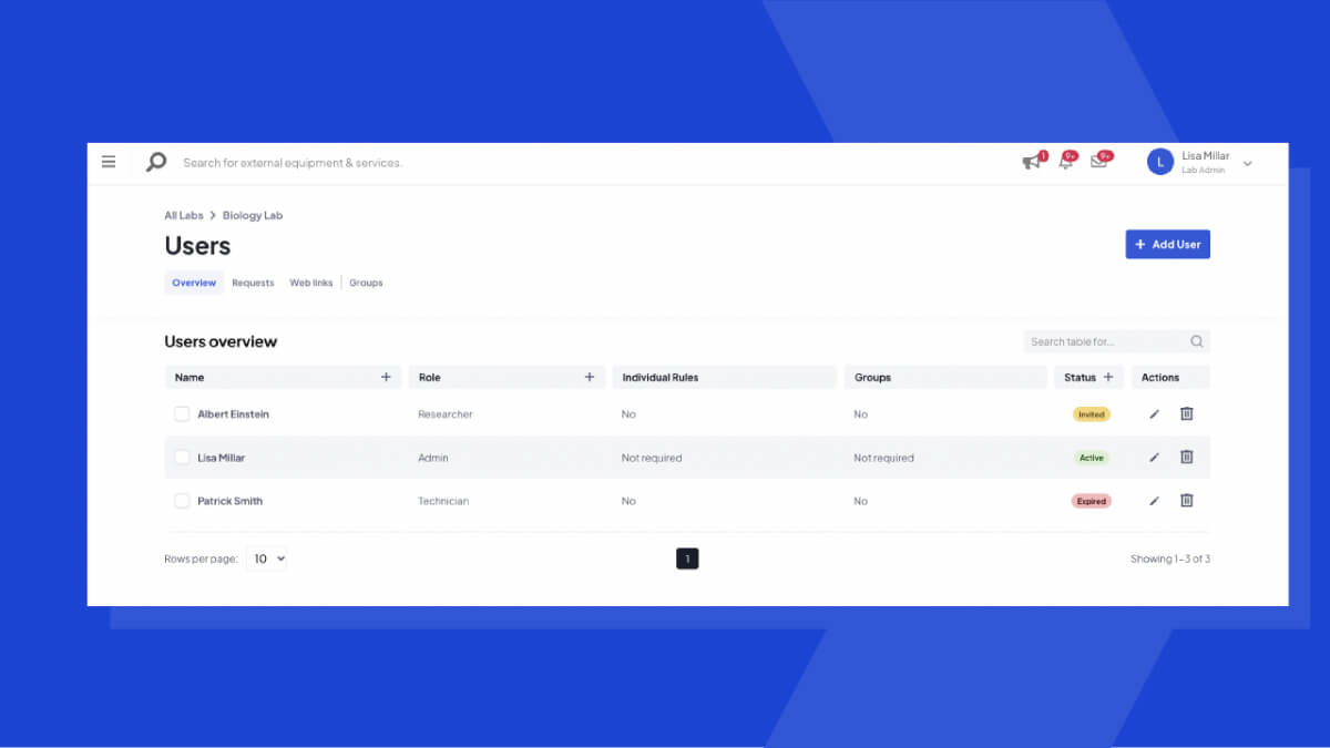 You can now book equipment smoothly on mobile with an optimised details page and quick drag-and-drop calendar. On desktop, you get the same refreshed calendar plus new tabs for training and access. Multi-equipment booking lets you handle up to five instruments in one go.